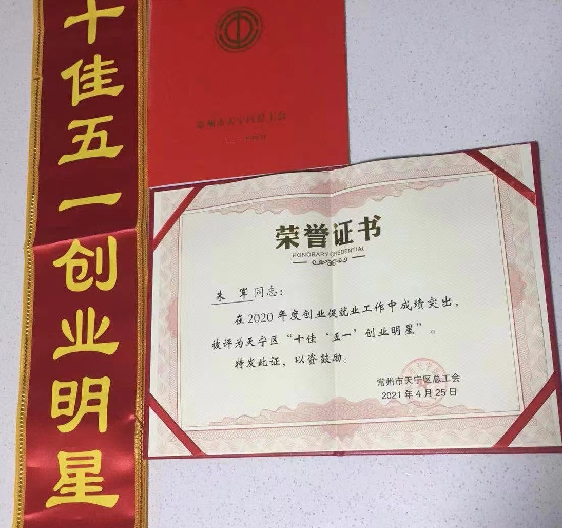 我公司總經(jīng)理朱軍在2020年度創(chuàng)業(yè)促就業(yè)工作中成績突出,被評為天寧區(qū)“十佳‘五一’創(chuàng)業(yè)明星”。