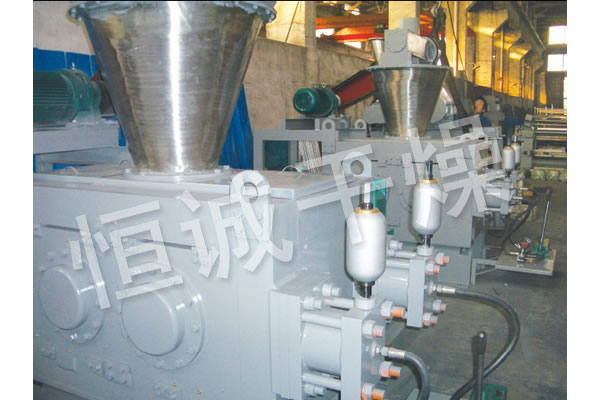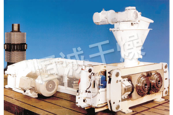 擠壓造粒的形式可以有對輥式和輪輾式兩種,對輥式擠壓是先壓成大塊,再破碎成顆粒,這樣裝置的能力大、顆粒強(qiáng)度高、能耗低,對輥擠壓在國外使用廣泛。輪輾式是在輥表面直接做成有穴槽型的形狀,一次擠成成型顆粒。產(chǎn)品強(qiáng)度較低有時需添加粘結(jié)劑。適合做有機(jī)肥和復(fù)合肥等顆粒肥料。