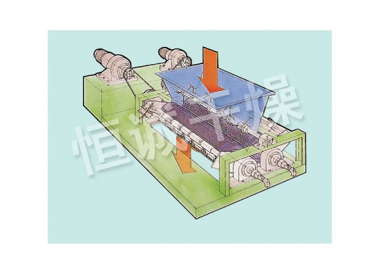 ◎水平擠出成型機: 由加料斗、二根輥子和U形振動網構成。以增大物料的表面積為目的,造粒物料與振動網接觸,由旋轉輥子的強制壓力擠出網外,形成圓柱形的顆粒。